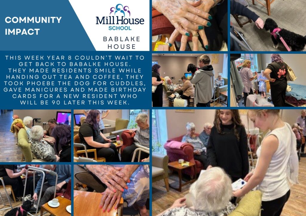 This week, our Year 8 students from Mill House School visited Bablake House Residential Home for a truly uplifting community engagement activity. With our school dog, Phoebe, in tow, the students spent a morning bringing joy, creativity and companionship to the residents.